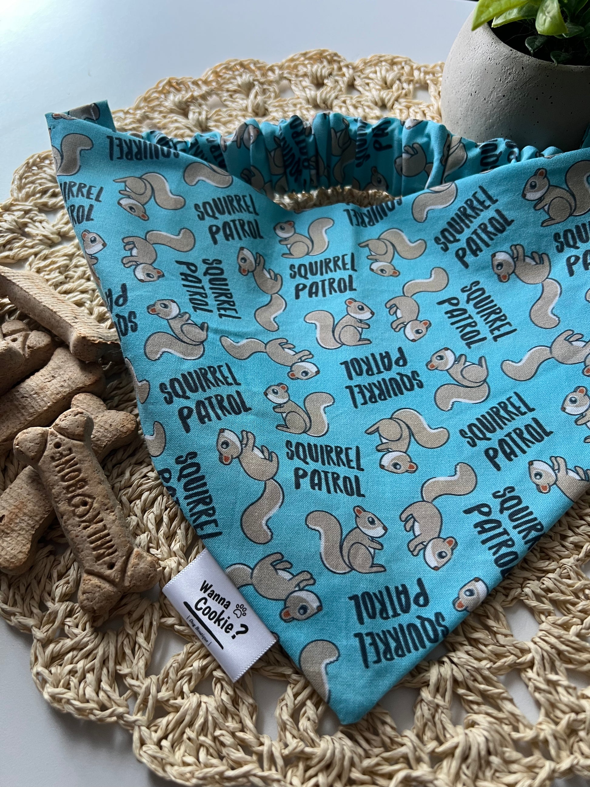 Introducing our "Squirrel Patrol" Dog Bandana- pawfect for everyday wear, special events, park dates or even a walkie walk in the neighborhood!